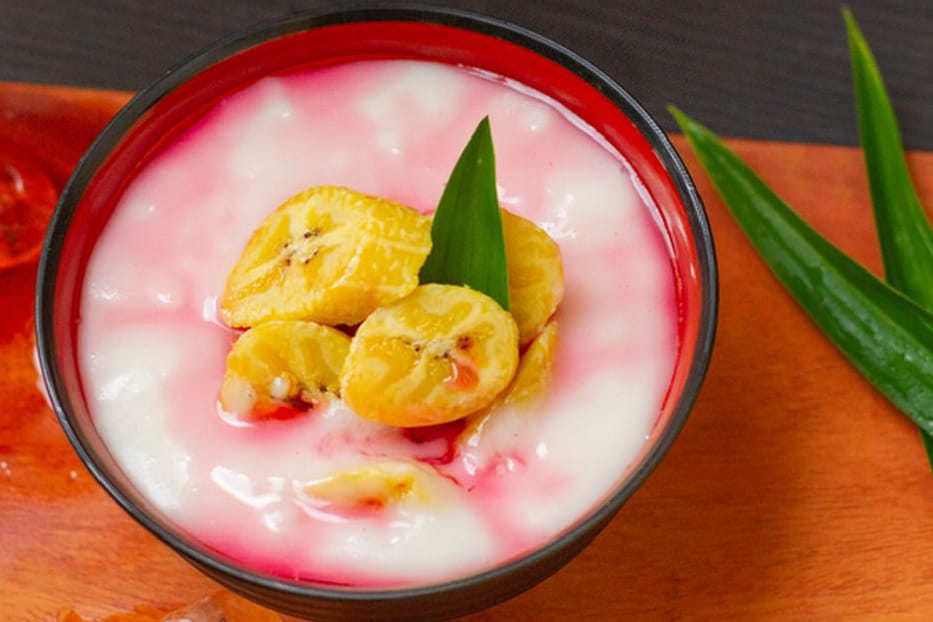 Pisang ijo adalah makanan penutup khas Makassar, Sulawesi Selatan, berupa pisang matang yang dibalut adonan tepung beras berwarna hijau , lalu dikukus hingga kenyal, dan disajikan dingin dengan bubur sumsum, sirup merah , es serut, serta siraman susu kental manis, menawarkan rasa manis, gurih, lembut, dan segar.